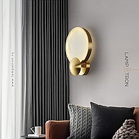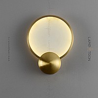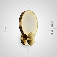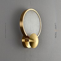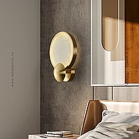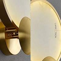 LED wall lamp with a marble ceiling in the shape of a disk with a double round mount of a brass shade