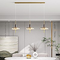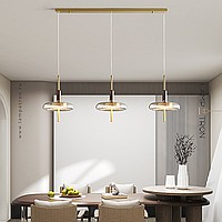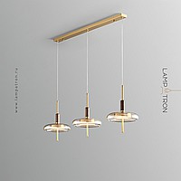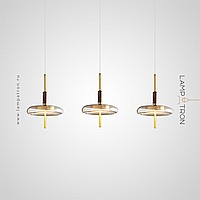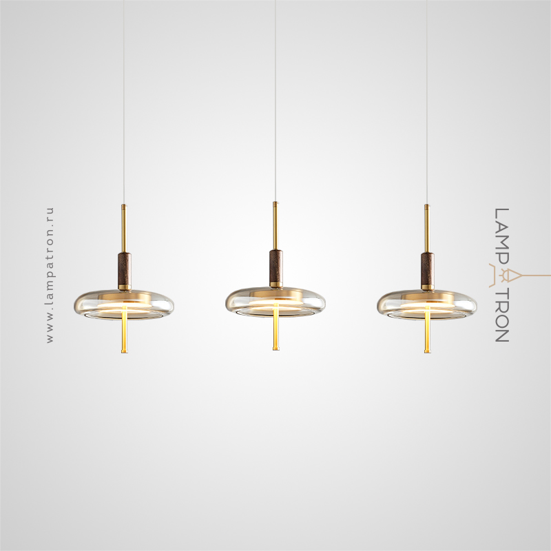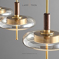 Ready-made combination of LED pendant lights with glass diffusers on brass and wood legs