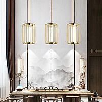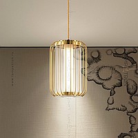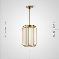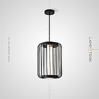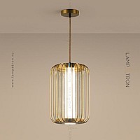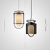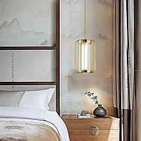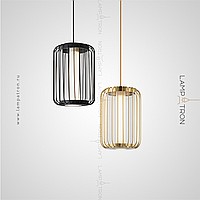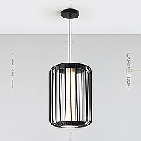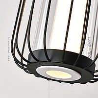 Suspended LED lamp with a matte cylindrical plafon inside a mesh frame
