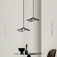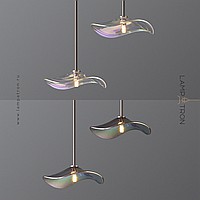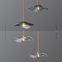 A series of luminaires with curved diffusers made of mother-of-pearl glass in the shape of lotuses