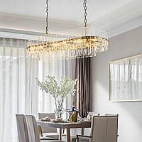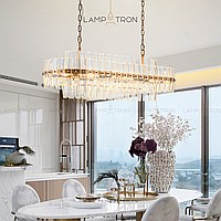 Modern -style chandelier with convex glass pendants on a ring or elongated frame