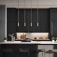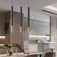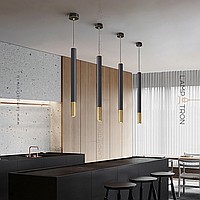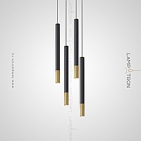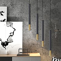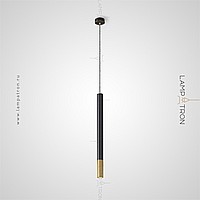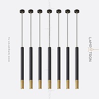 Suspended LED lamp of an elongated cylindrical shape with a brass tint edging