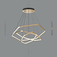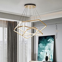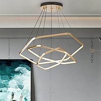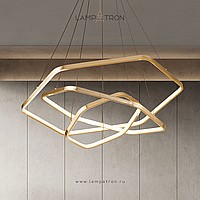 A trial-tier chandelier with lamps in the form of polygons with an internal LED-browing along the contour