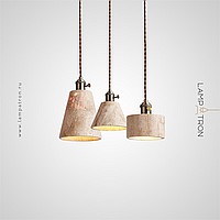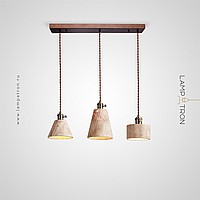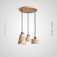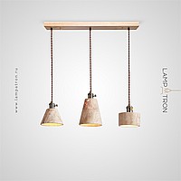 Ready-made combination of pendant lamps with a geometrically shaped stone body and wooden fastening