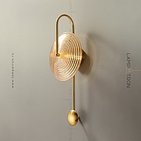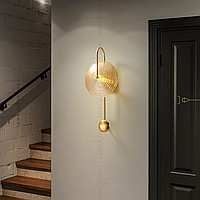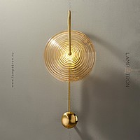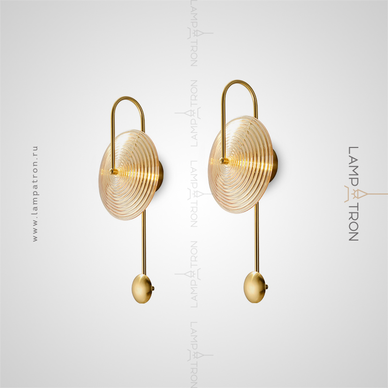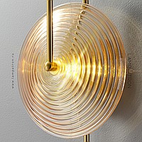 Wall lamp with disc-shaped diffuser made of embossed glass on an arc bracket