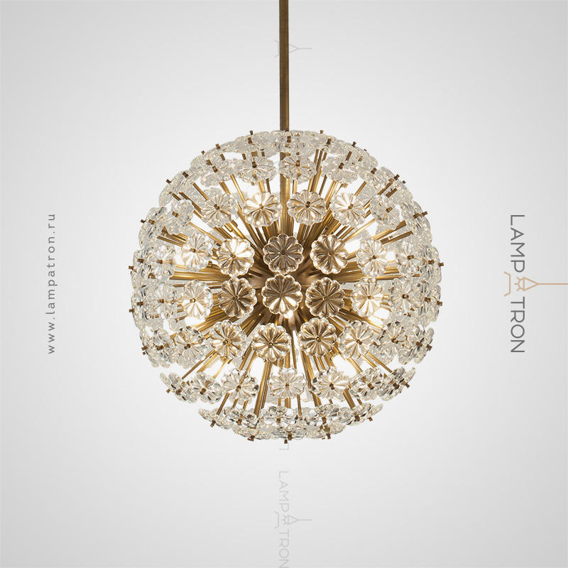 Suspended charter in shape with glass decor in the form of flowers over the entire surface