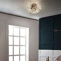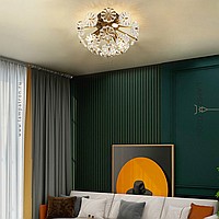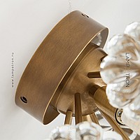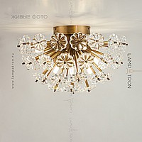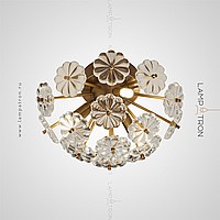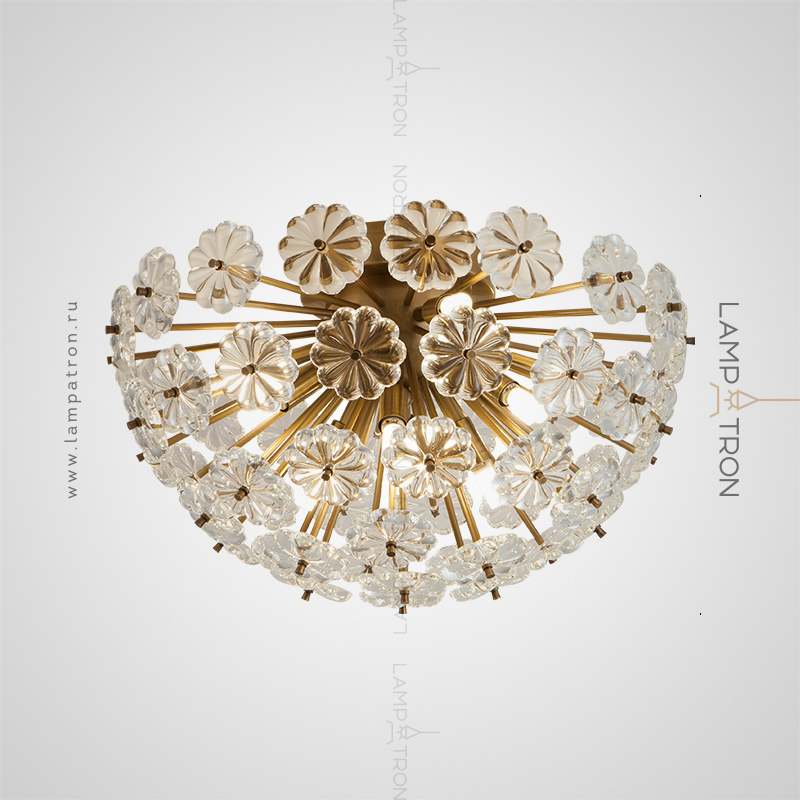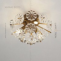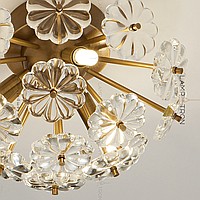 Ceiling chandelier with glass decor in the form of flowers on radially located racks