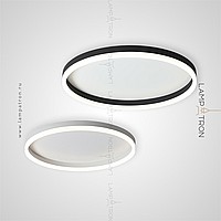 A series of ceiling LED lamps with a white ring plafon on a flat base