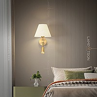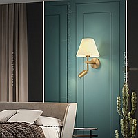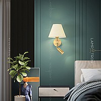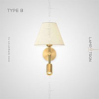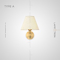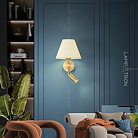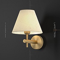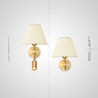 A series of wall lamps with a textile lampshade in the form of a truncated cone and an additional rotary ceiling
