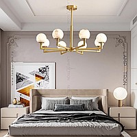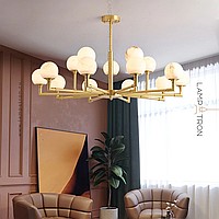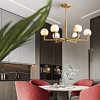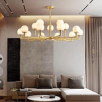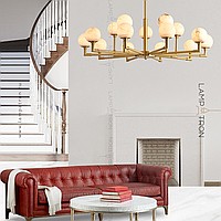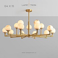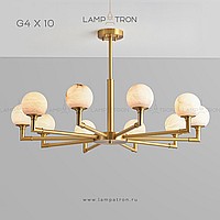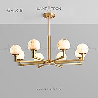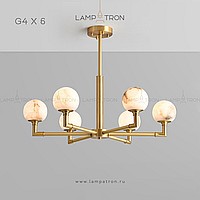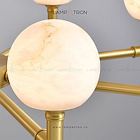 A series of chandeliers with spherical lamps of natural marble on the radial frame