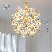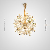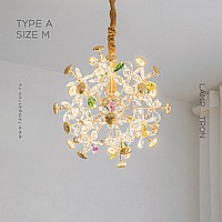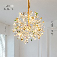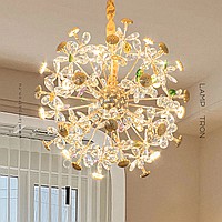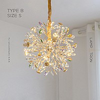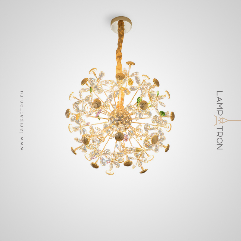 A series of spherical LED chandeliers with crystal diffusers in the form of flowers