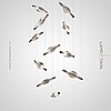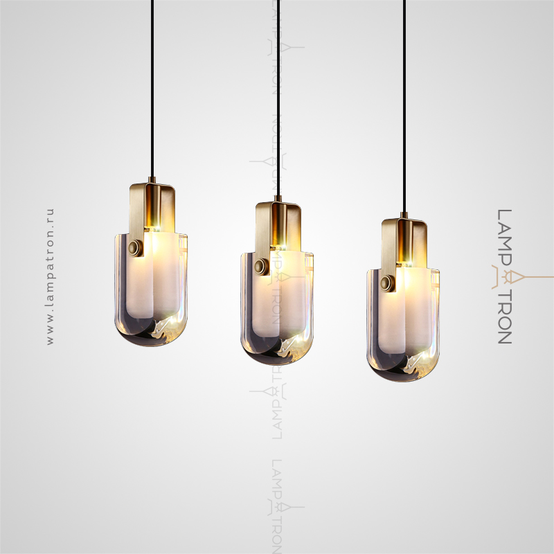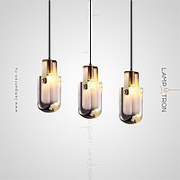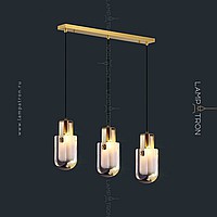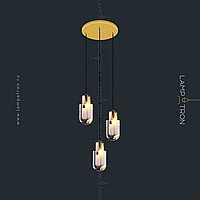 Ready -made combination of suspended lamps with white shades in rounded crystal ingots
