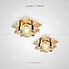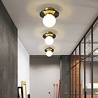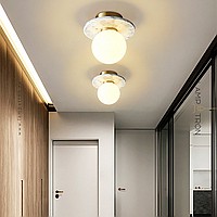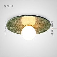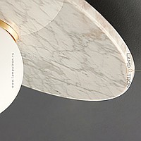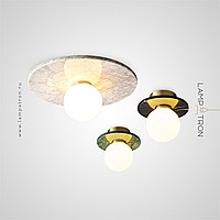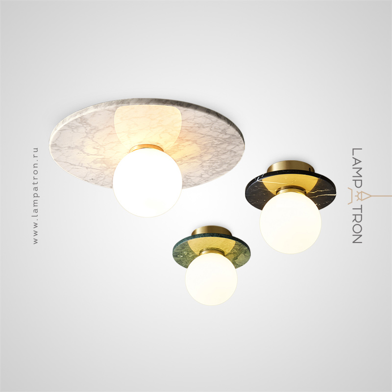 A series of ceiling lamps with a glass spherical shade and a disc-shaped diffuser made of marble