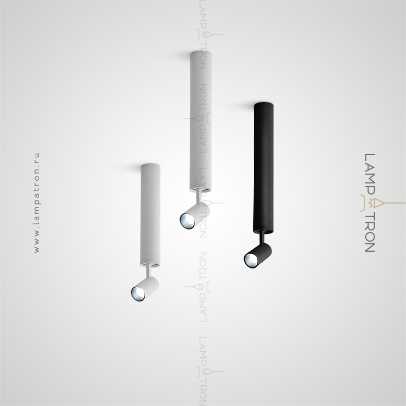 A series of spotlights with a swivel cylindrical plafon on a retractable leg