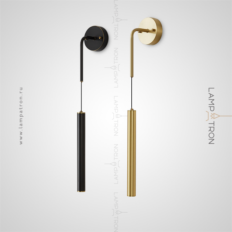 A series of wall LED lamps with rotary ceiling of an elongated cylindrical shape on suspensions with a round mount