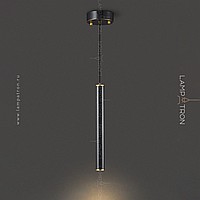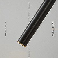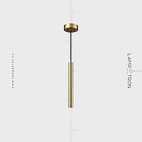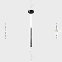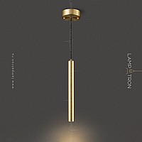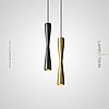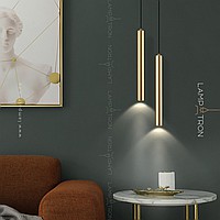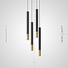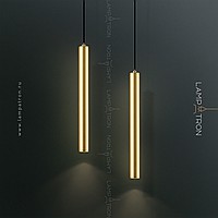 A series of suspended LED lamps with glossy metal plafins of an elongated cylindrical shape
