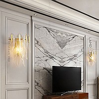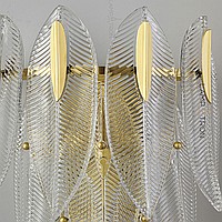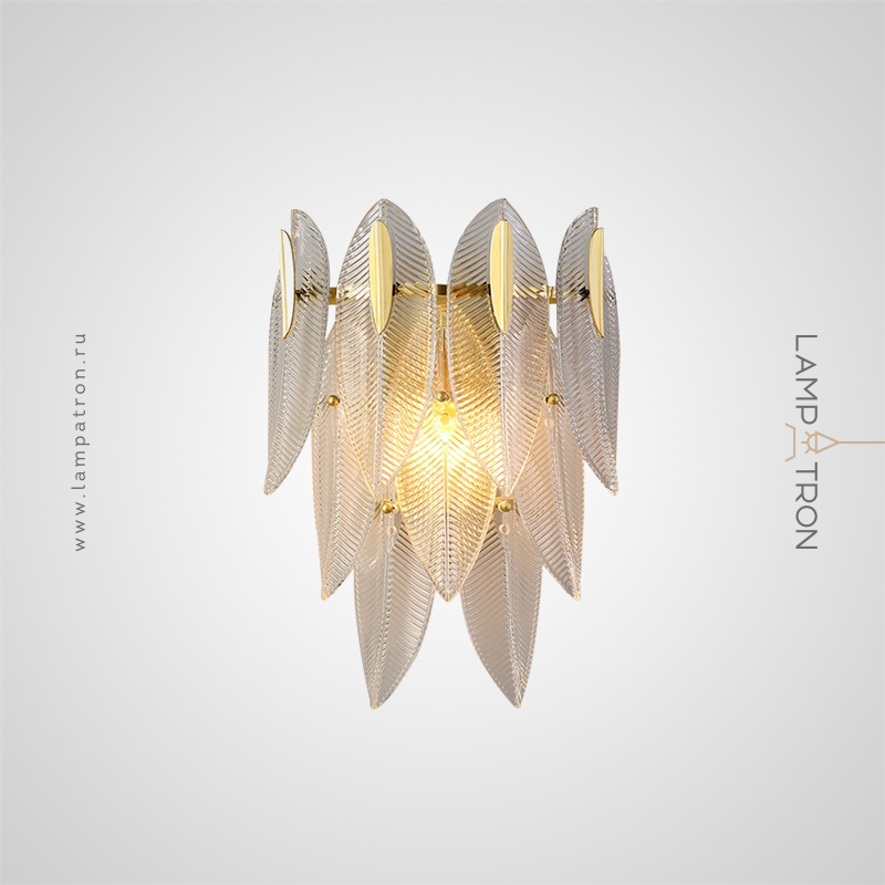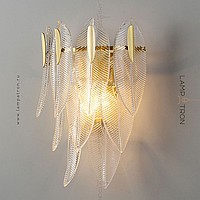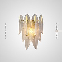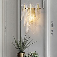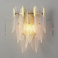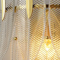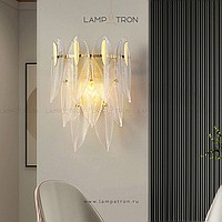 A wall lamp in a postmodern style on a metal frame and a lampshade of glass with a relief pattern
