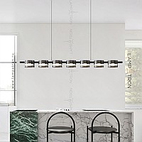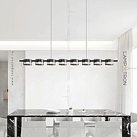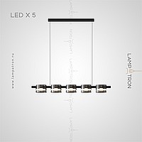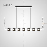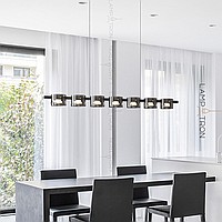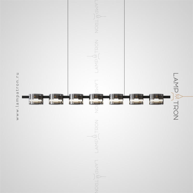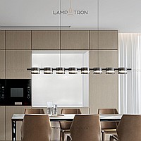 A series of rack LED lamps with paired rectangular plafins made of glass of smoky shade