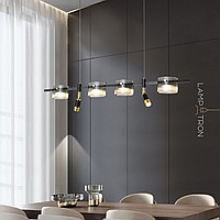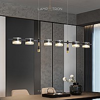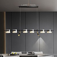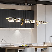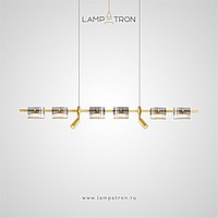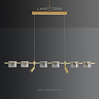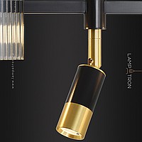 In-line LED luminaire with swivel spots and rectangular diffusers made of embossed glass