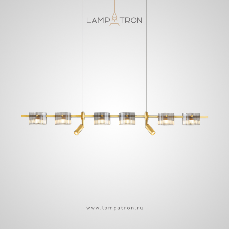 In-line LED luminaire with swivel spots and rectangular diffusers made of embossed glass