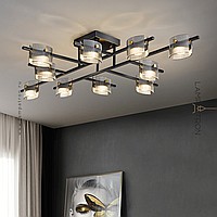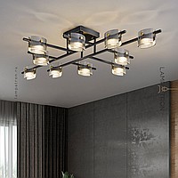 A series of LED ceiling chandeliers with rectangular diffusers made of embossed glass