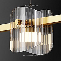 A series of slatted LED luminaires with curved diffusers made of embossed glass