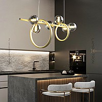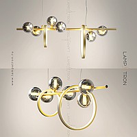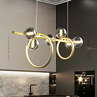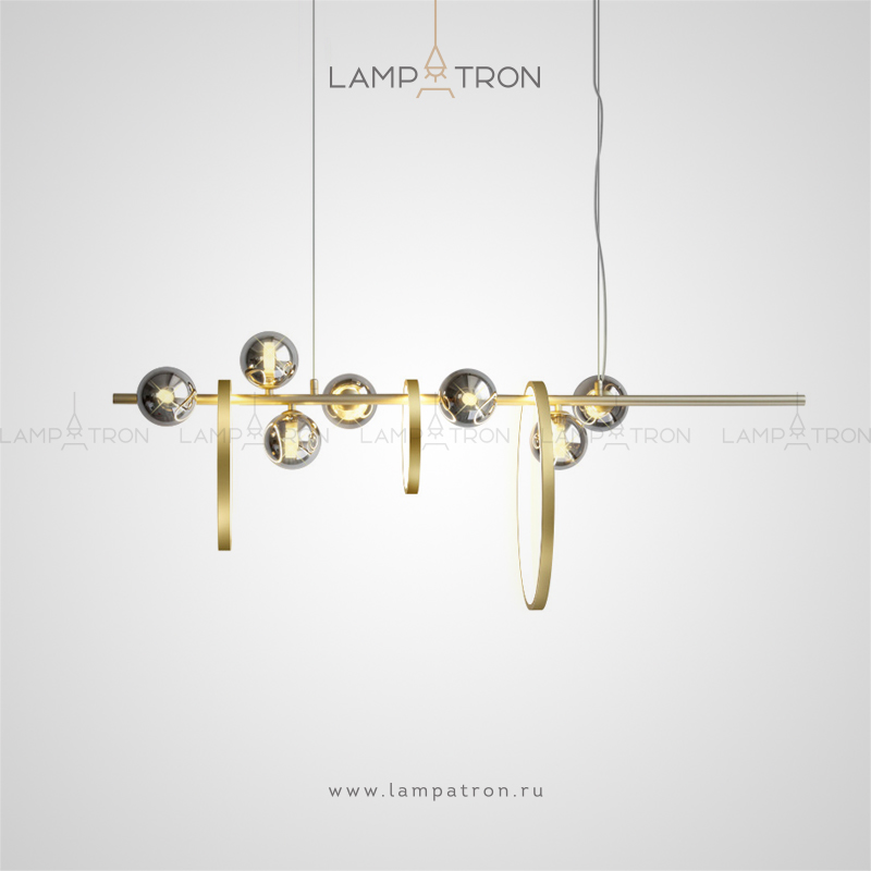 A series of rack lamps with smoky spherical glasses made of glass, alternated by rings of different diameters with an internal LED lighting