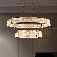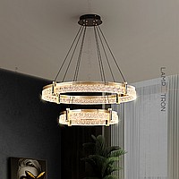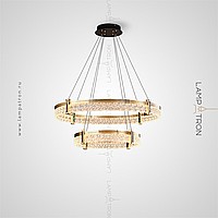 A series of ring LED chandeliers with transparent patterned scattering and rectangular mother -of -pearl inserts