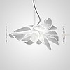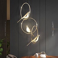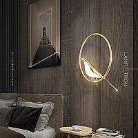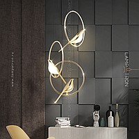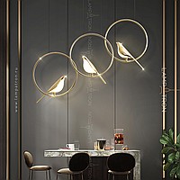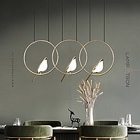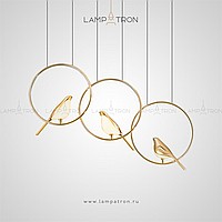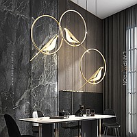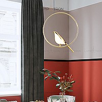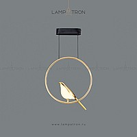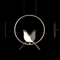 Suspended lamp with a ring frame and a light source in the shape of a bird