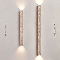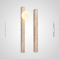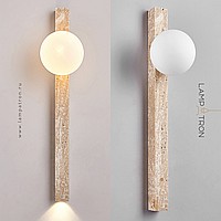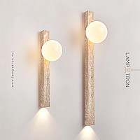 A series of wall lamps with an elongated rectangular stone body and a spherical shade