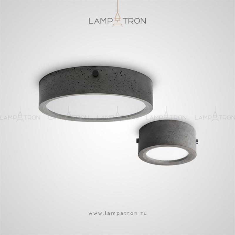 A series of point lamps with cylindrical crime ceiling and a round LED panel