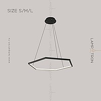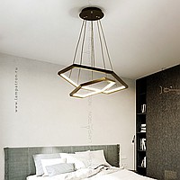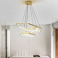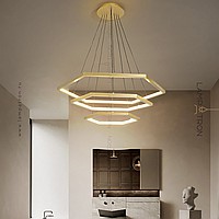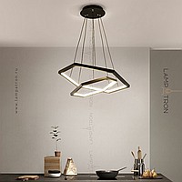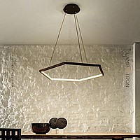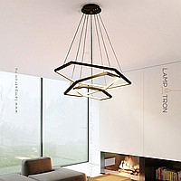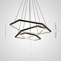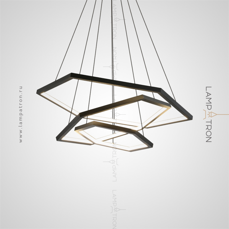 A series of ring chandeliers with an internal LED lighting along the contour of a metal case in the form of a closed polygon