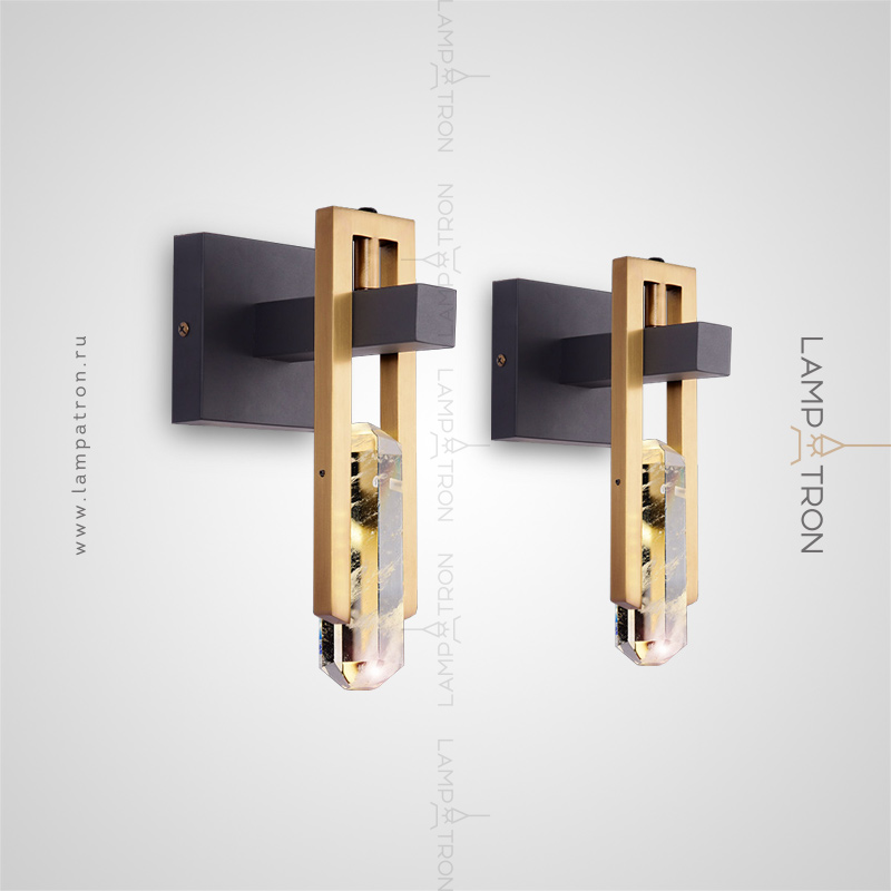 Wall LED lamp with a crypt of crystal stone in a metal frame