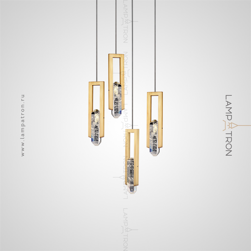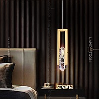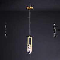 Suspended LED lamp with a cryphel in the form of a crystal stone in a metal frame