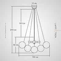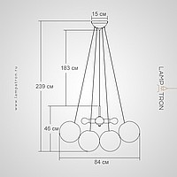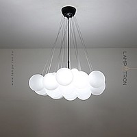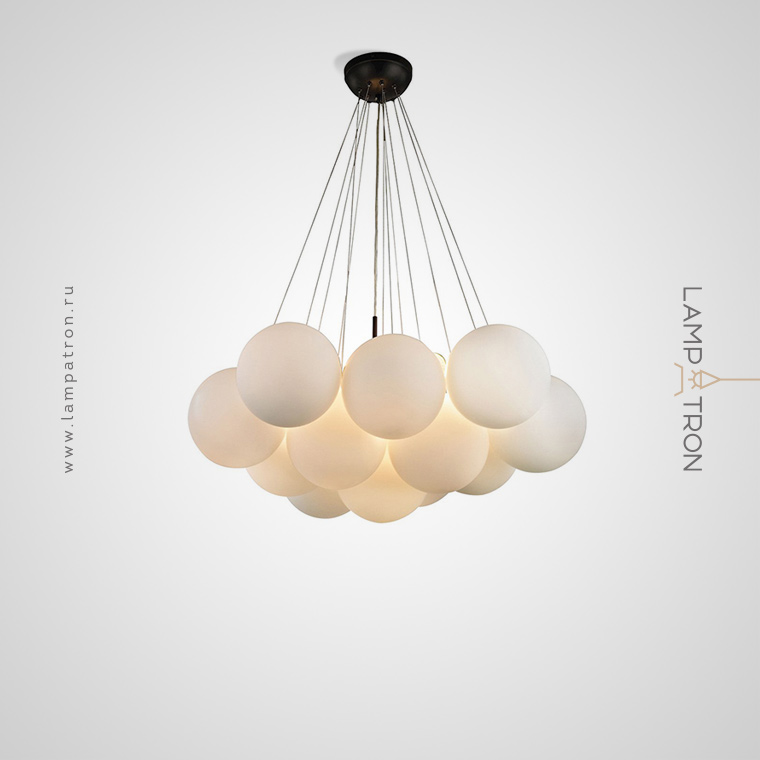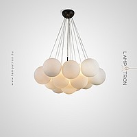Designer chandelier with decorative balls of matte glass