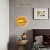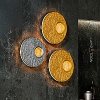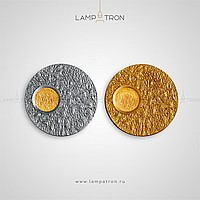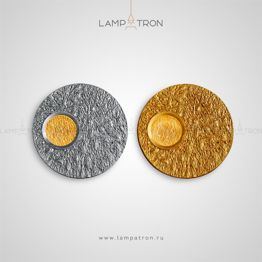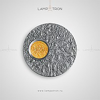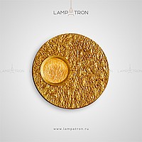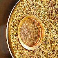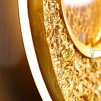 The textured wall lamp in the form of a disk with a foil and shameal gold and a luminous window from acrylic