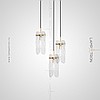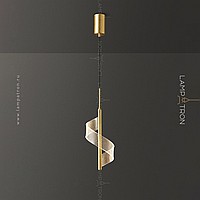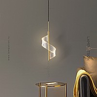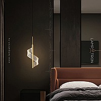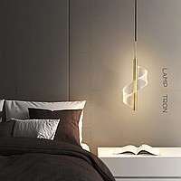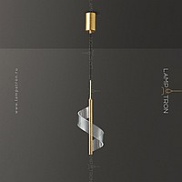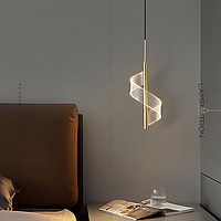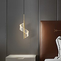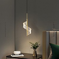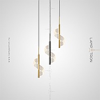 A series of suspended LED lamps with curled ribbon plafon with a point pattern