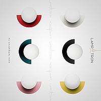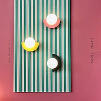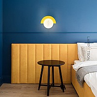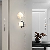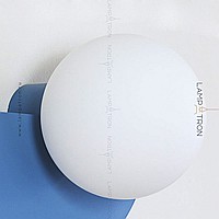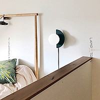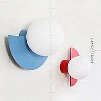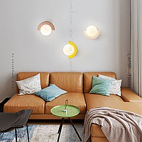 A series of wall lamps with a white spherical shade and a decorative coloured element