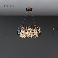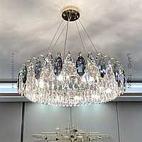 A series of ring chandeliers with almond-shaped diffusers made of transparent and smoky crystal K9