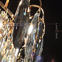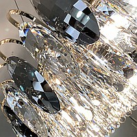 In-line luminaire with almond-shaped diffusers made of transparent and smoky crystal K9