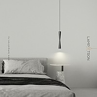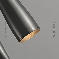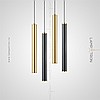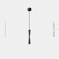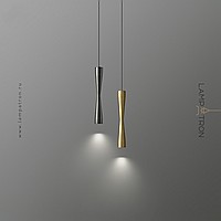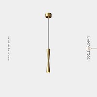 A series of pendant LED lights with an elongated brass case in the shape of an hourglass