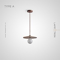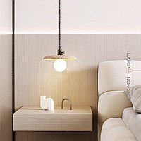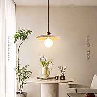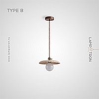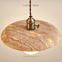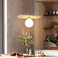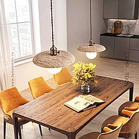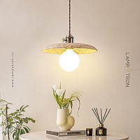 A series of pendant lamps with a disc-shaped lampshade made of yellow travertine stone
