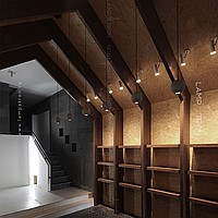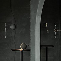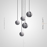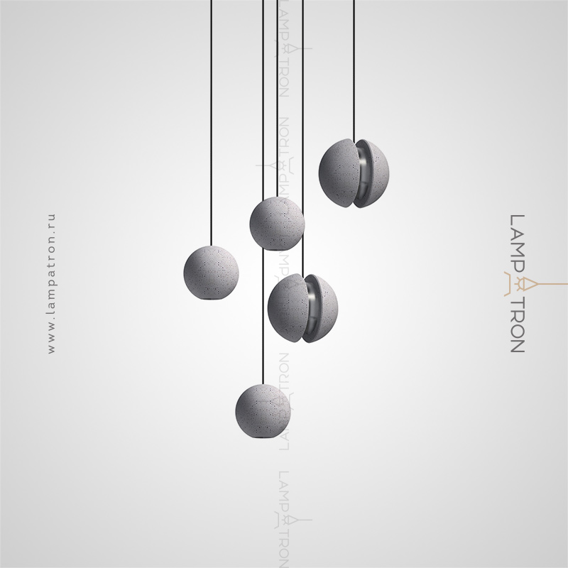 A series of suspended lamps with a spherical and composite ceiling of two hemispheres of cement