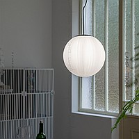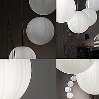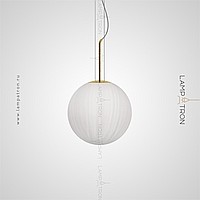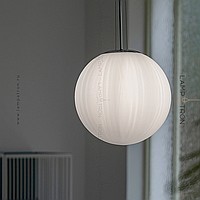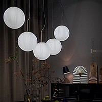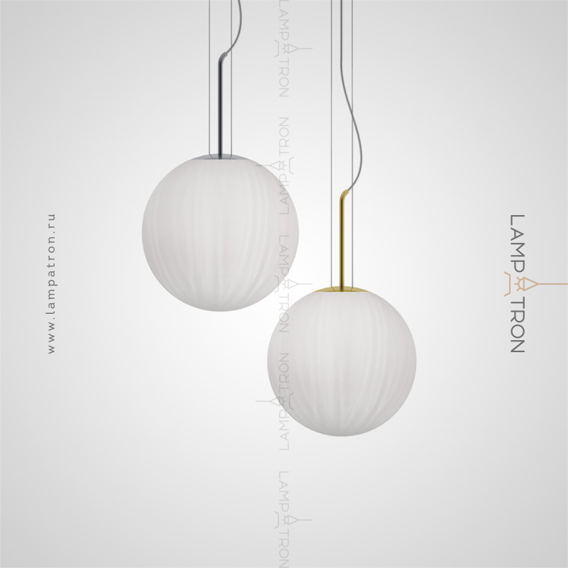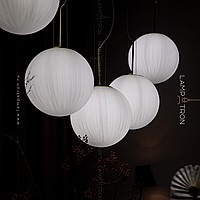 A series of suspended lamps with spherical embossed shafts on curved racks