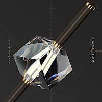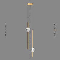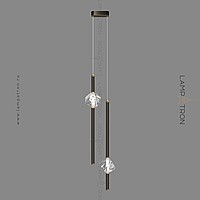 A finished combination of suspended lamps with two crystal ceiling in the form of mowed stones on a vertical tubular frame