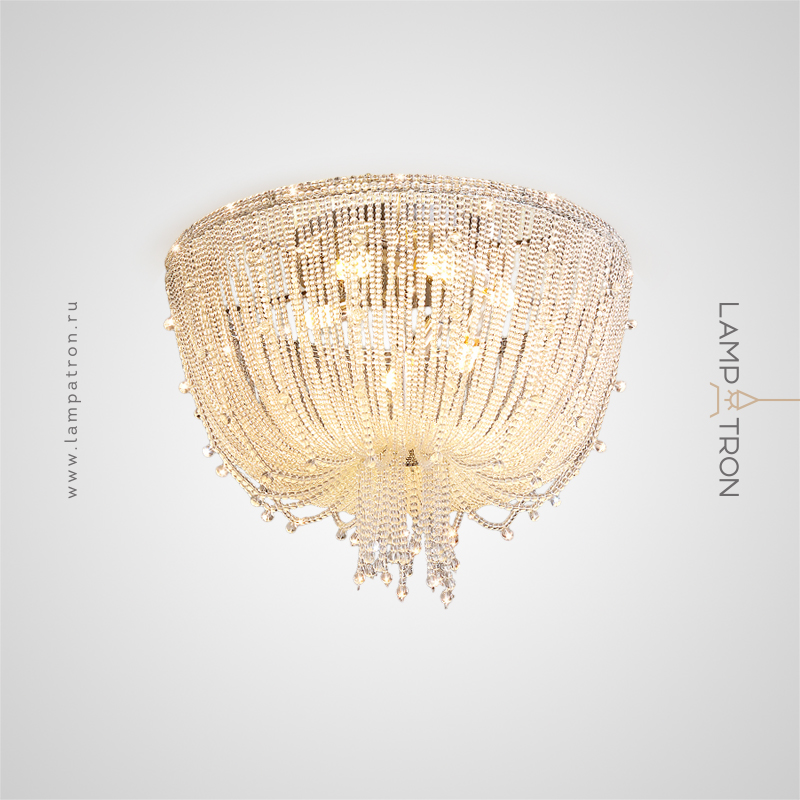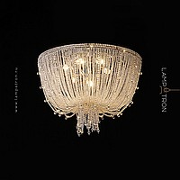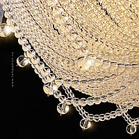 Ceiling chandelier with a domed lampshade made of pendants in the form of crystal beads