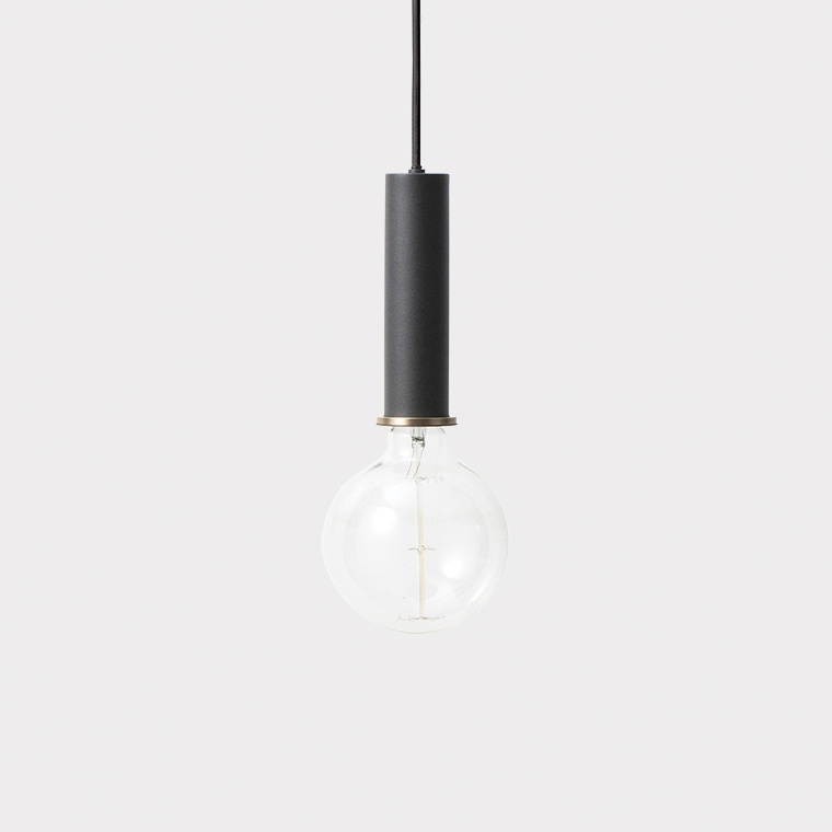 Lampholder Black Long with Brass Ring