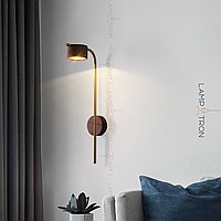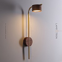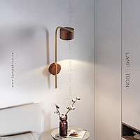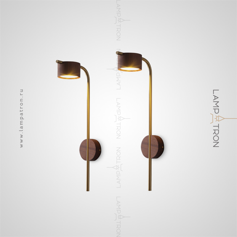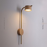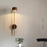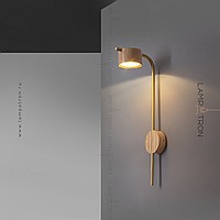 A series of wall LED lamps with cylindrical ceiling from dark and light wood