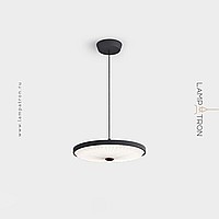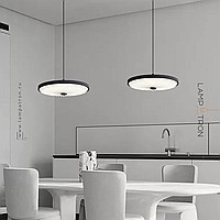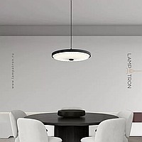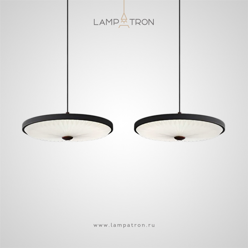 Pendant lamp with disc-shaped shade and corrugated white diffuser