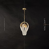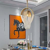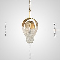 Designer lamp on a chain with a lampshade of pendants in the form of crystal beads